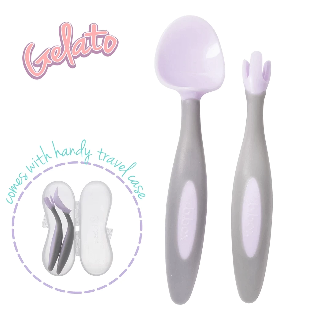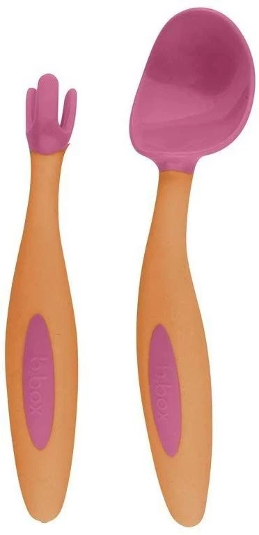 Our cutlery set has been designed with a leading paediatric occupational therapist (OT) as the ideal toolkit for tots who are ready to self feed. The unique spoon shape acts as shovel helping little ones to scoop up their food, even with a flat plate. The unique deep scoop spoon shape and angled handles encourages correct hand to mouth positioning, and helps to contain food within the spoon as bubs practices bringing it to his/her mouth, which means more food makes it to the mouth and less mess!