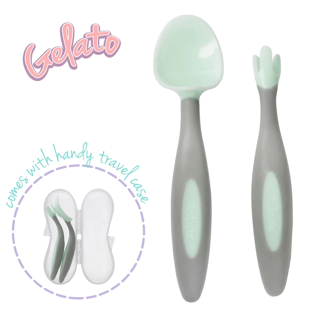 Our unique fork has been designed to fit the size and shapes of little mouths. Its curved blunt prongs are gentler (and safer) on little mouths and gums. Set comes complete with a handy travel case to keep utensils clean before mealtime on the go, and after to prevent soiling in nappy bags or hand bag.