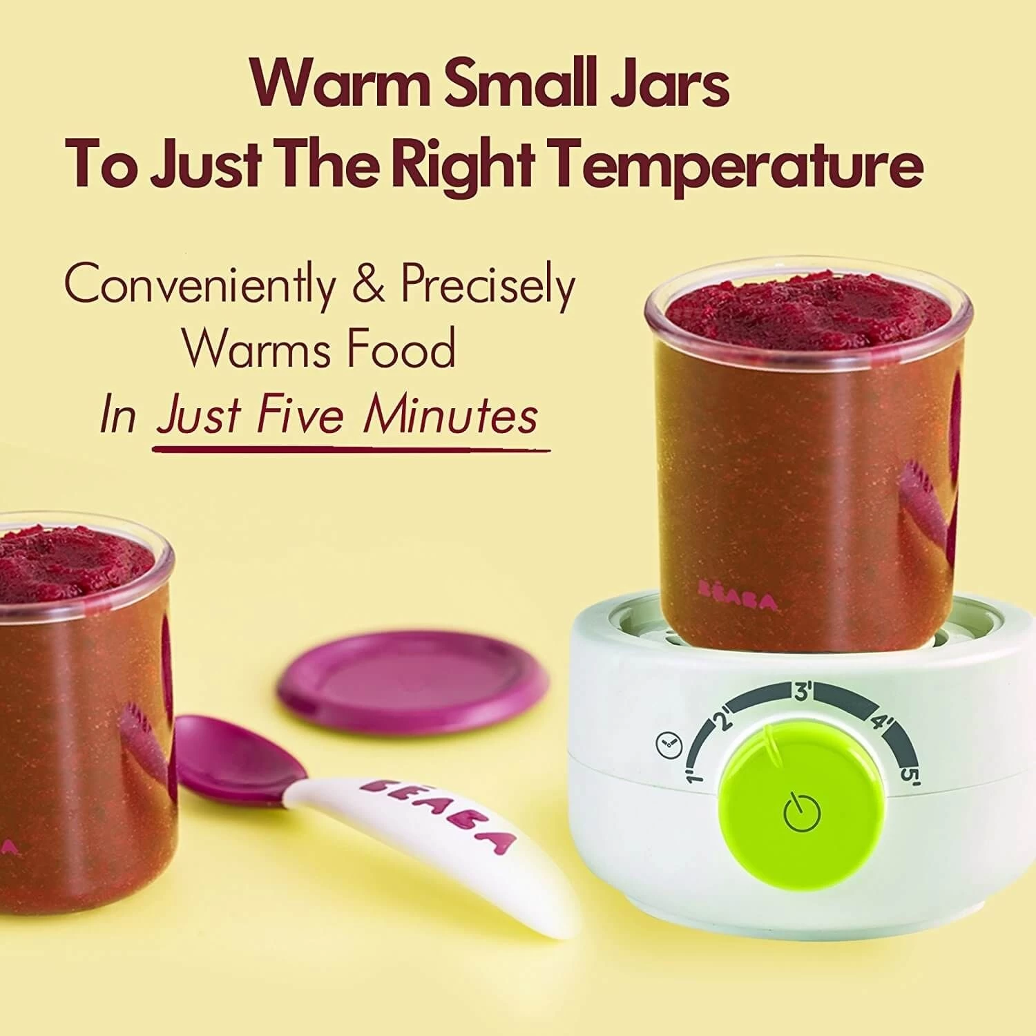 – Heats small food jars in 5 minutes