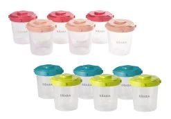 Beaba Set of 6 Clip Portions 2nd Age (200ml) Food Storage Container is a set of six 200ml food storage containers. Useful for segregating and storing baby’s food in the right portion amounts. These containers that can be stacked and clipped together, are good for travelling and at home. This helps to control the amount baby eats each time.
