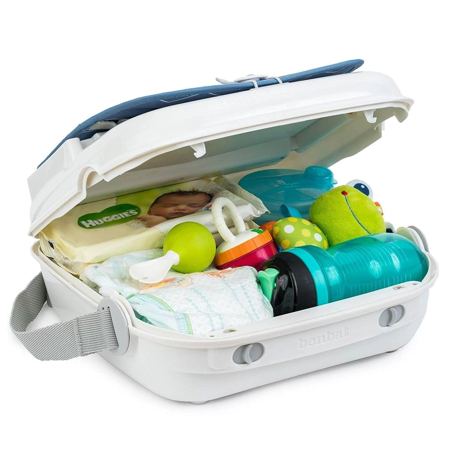 A must have when traveling! This portable booster is the compact solution for parents on the go. Easily fits into a small suitcase or car trunk. Ideal for restaurants, vacations or other places where a booster seat may not be accessible. Great highchair replacement. Storage compartment has ample room for food, sippy cups, diapers, wipes, utensils and more! A great diaper bag replacement for quick trips with your toddler.