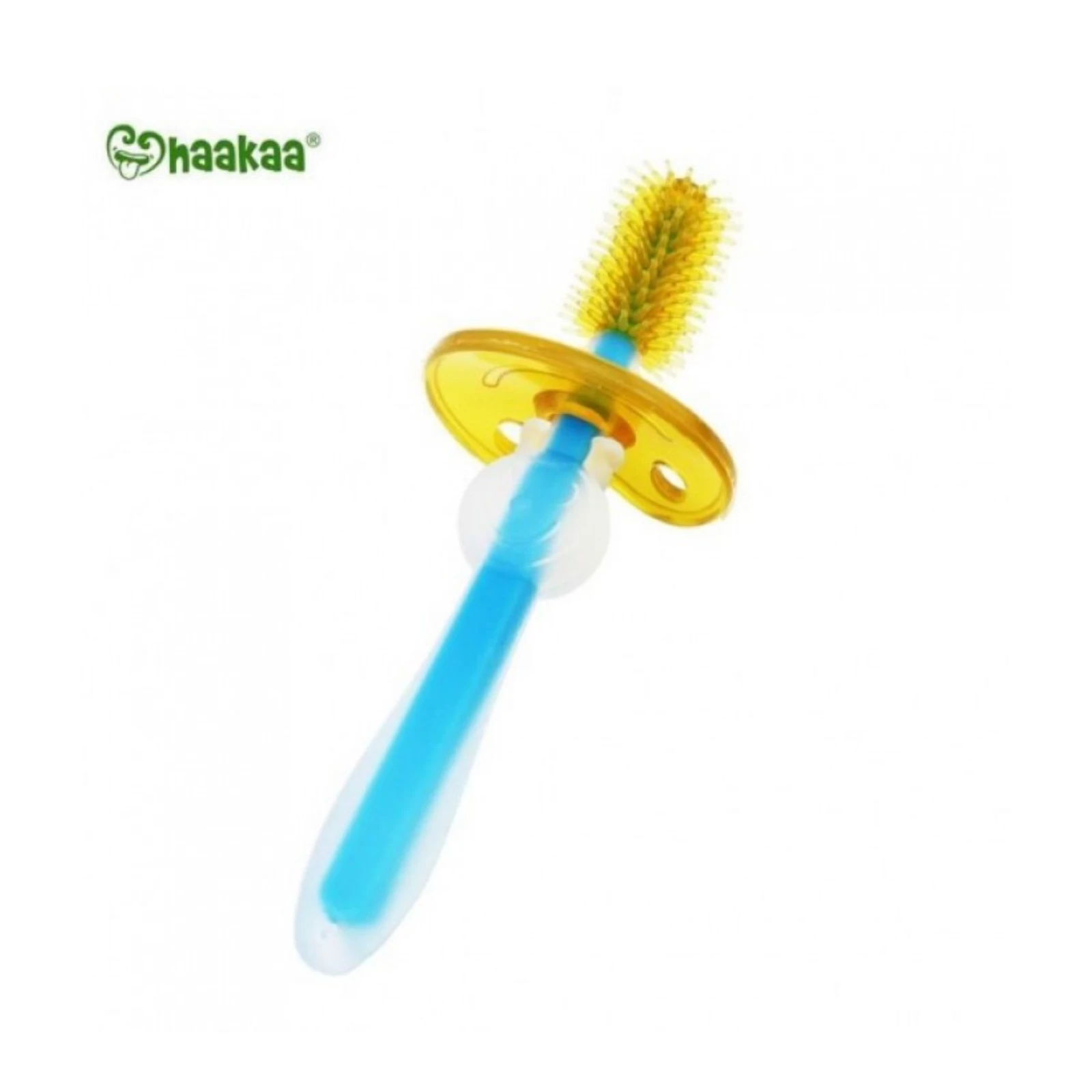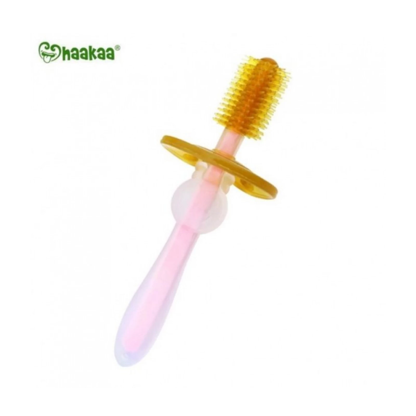 The Haakaa 360° Silicone Toothbrush is designed to give your little one a thorough and effective cleaning experience when brushing their little teeth and gums. The soft silicone bristles all around the head provide a 360° clean, removing more plaque than conventional children’s toothbrushes!