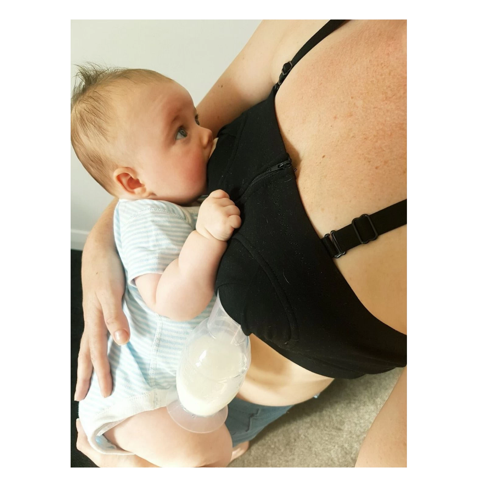Our Hands-Free Bra is made with breastfeeding mums in mind. Each bra comes with a simple to insert expander which gives more room and moulds to each mum’s unique shape and bust size. It also has a zip-up front and an adjustable back to accommodate changes to your body during nursing.