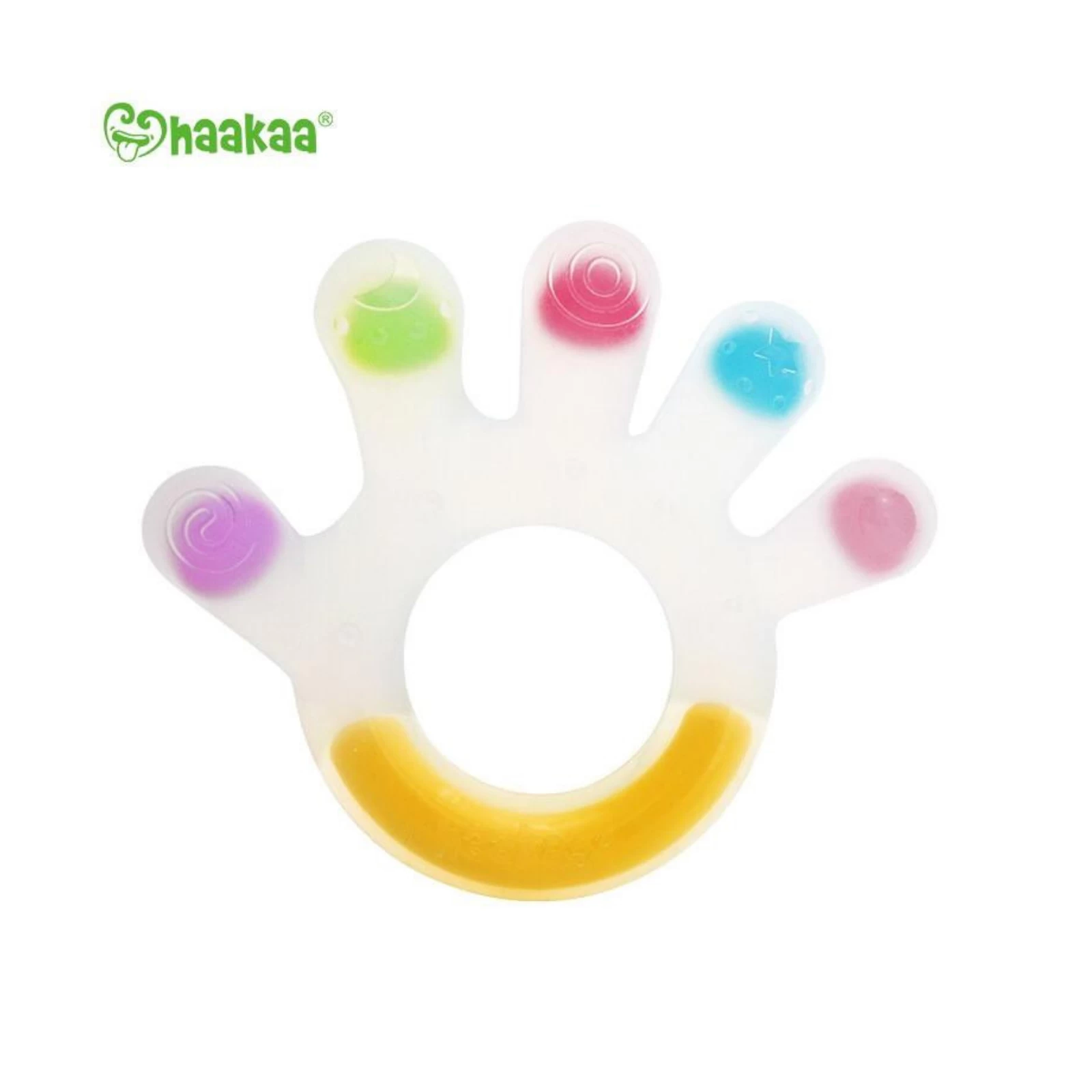 The Silicone Palm Teether is the perfect tool for little ones starting to teethe. It’s easy-to-hold shape and soft silicone teething parts are thin enough to fit in your baby’s mouth while still providing relief.