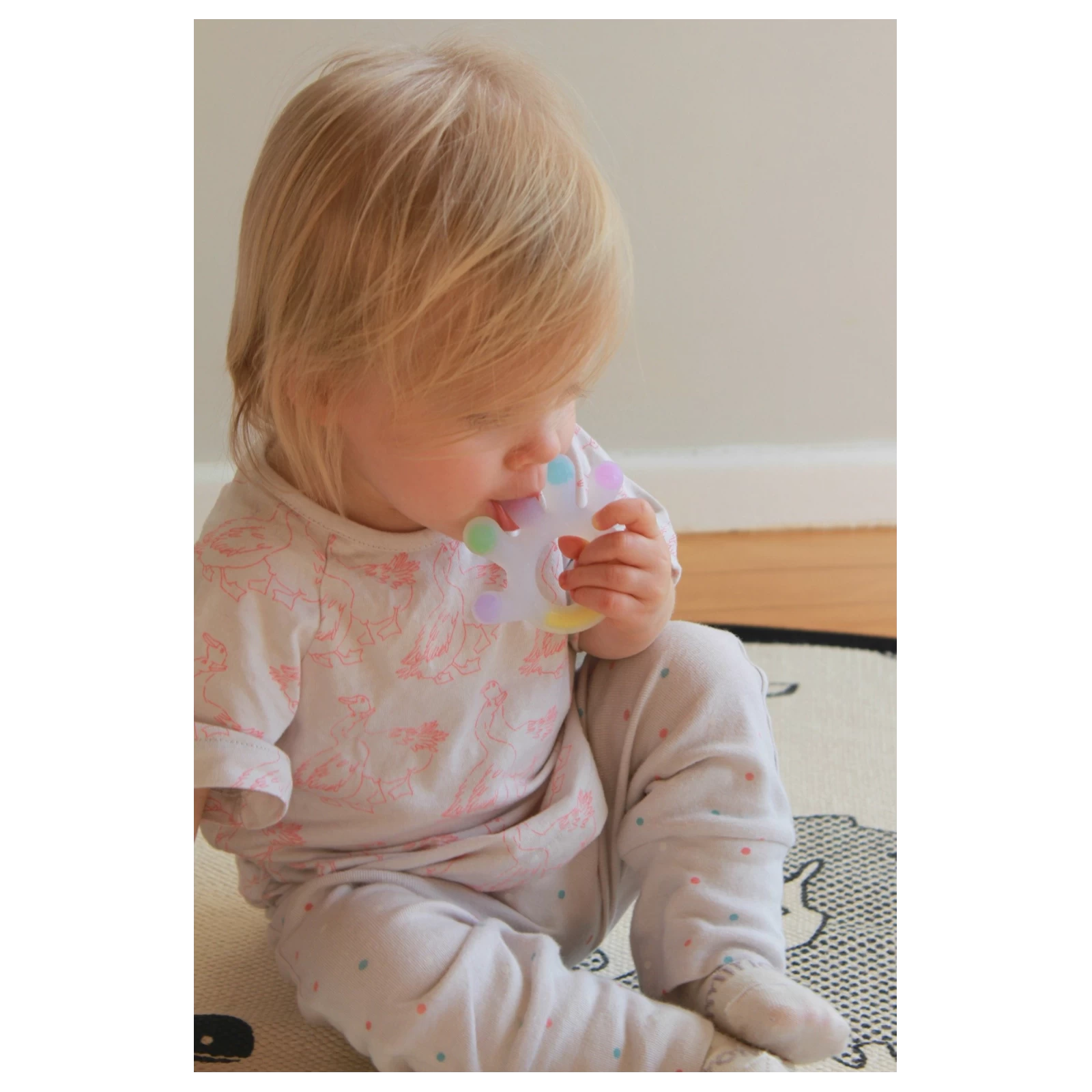 The ridged design helps to develop your baby’s motor and play skills while providing safe, soothing relief from aching gums and new teeth. You can also chuck our Palm Teether in the freezer to provide added cooling relief!