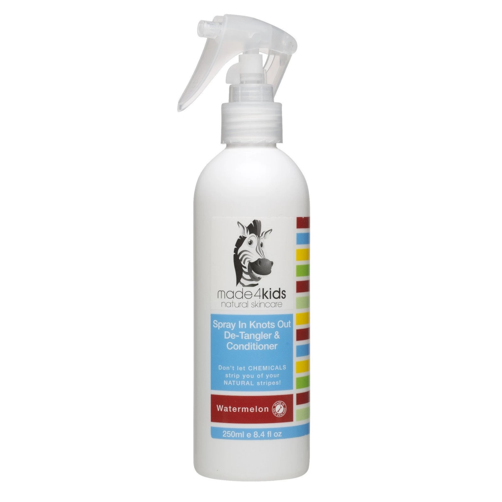 Say goodbye to knots, naturally! A fun spray bottle detangler to get even the gnarliest of knots out of long hair. No one likes knots so try our spray in knots out de-tangler and conditioner and say goodbye to knots, naturally. This lovely leave-in spray conditioner is perfect for children with longer or easily tangled hair. Just towel dry, spray on and gently comb.