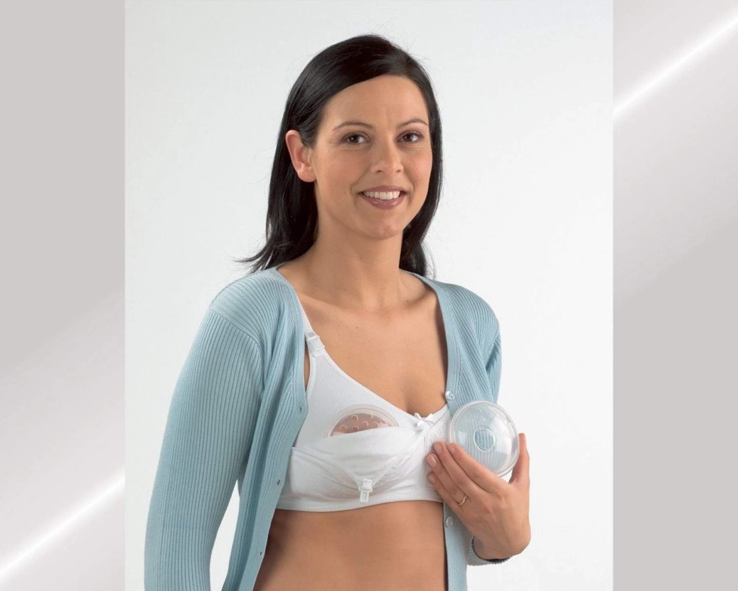 Nipple formers apply gentle pressure on the areola (the circle of darker-coloured skin around the nipple), which can help to gradually draw out a flat or inverted nipple.