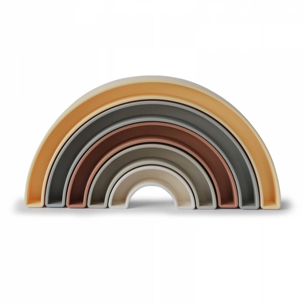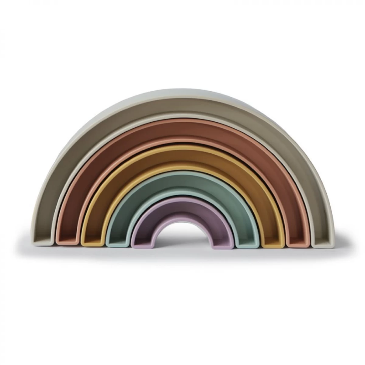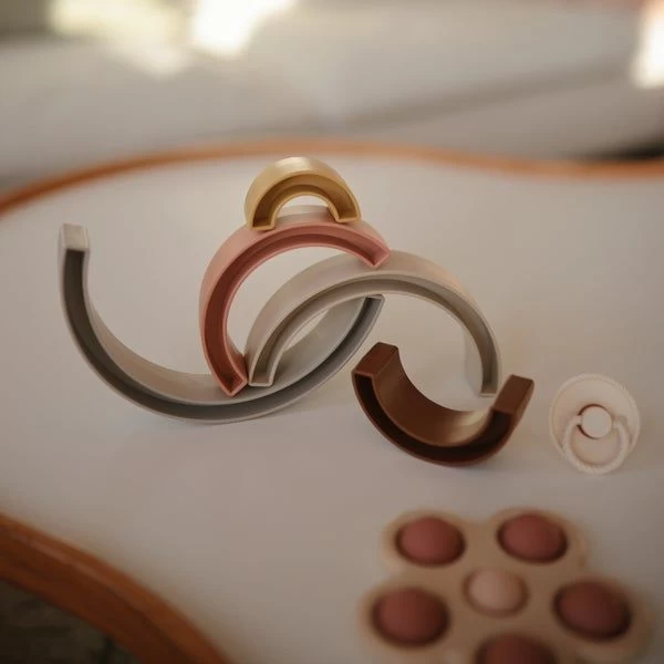 From our Danish hygge collection comes this playful rainbow stacker, inspired by the rainbow skywalk in Aarhus, Denmark. Little ones will sort, stack and play with this beautiful set, all while learning with soft colors and developing their fine motor skills.