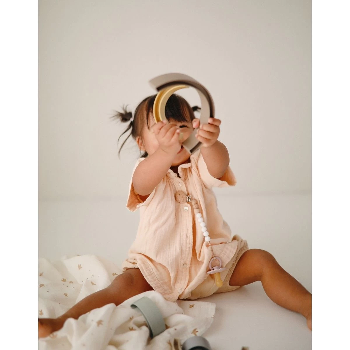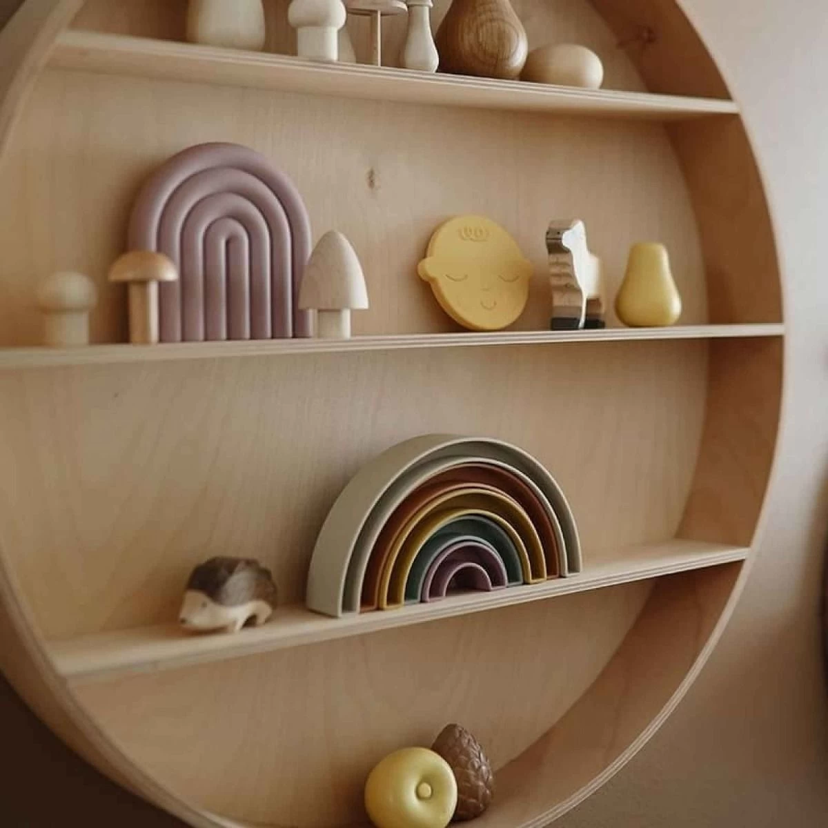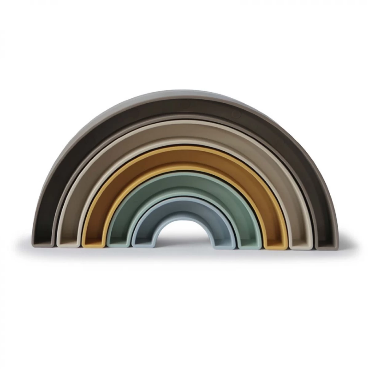 From our Danish hygge collection comes this playful rainbow stacker, inspired by the rainbow skywalk in Aarhus, Denmark. Little ones will sort, stack and play with this beautiful set, all while learning with soft colors and developing their fine motor skills.
