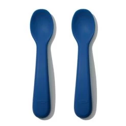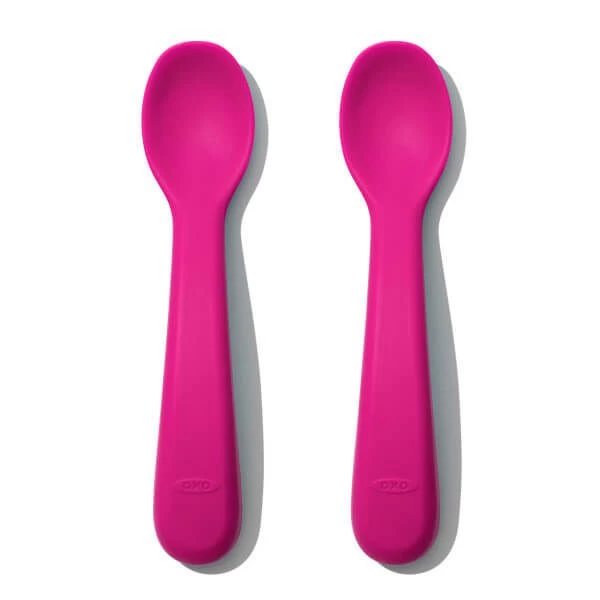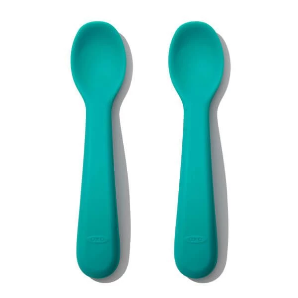 Gentle on gums, contoured for little hands Tot Silicone Spoons are the ideal first utensil for babies and toddlers learning to feed themselves. Made with food-safe, BPA-free silicone, the soft spoon heads flex for comfort in tiny mouths — especially important for sensitive gums during teething. The deep head helps new eaters get more food onto the spoon and into their mouths for confidence-building success at mealtime. The rounded handle is easy for small hands to grip, while the anti-roll design means it stays put on the table.