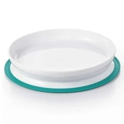 The Stick & Stay Suction Plate feature a secure suction base that sticks firmly to surfaces until mealtime is over. The parent-friendly design makes these plates and bowls easy for grown-ups to remove, but tricky for little ones, to prevent slipping, tipping or tossing. The side walls are designed to help tots with scooping to help promote self-feeding.