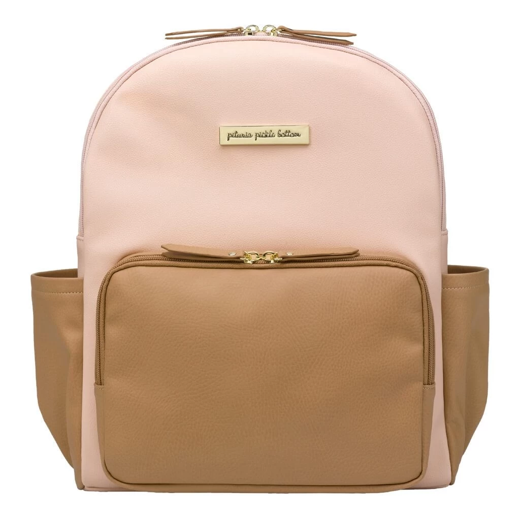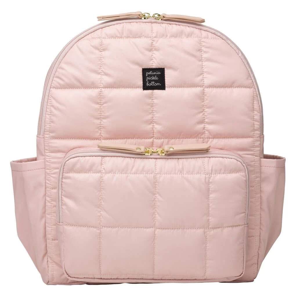 A new silhouette targeted for the value-oriented customer. Built for customers with aspirational taste for Petunia Pickle Bottom but who are shopping on a budget. This 4 pieces set is lightweight and compact but is packed with features and added extras. Featuring two exterior bottle pockets, an insulated/wipeable front snack/mess pocket, two interior organizational pockets, dual-function padded backpack straps + stroller straps, changing pad, insulated bottle holder and packing pixel—this bag has everything new parents need!