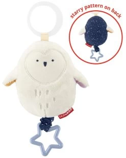 Whoo’s ready to play? Soft and plush to the touch, our sweet owl stroller toy vibrates and shakes when the star is pulled. Attach it to your stroller and entertain baby on-the-go. Our engaging baby toy is also great for at-home play to double the fun.