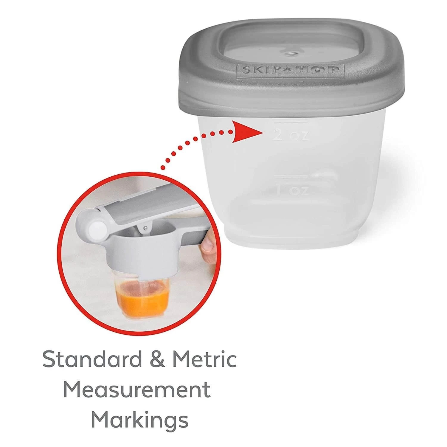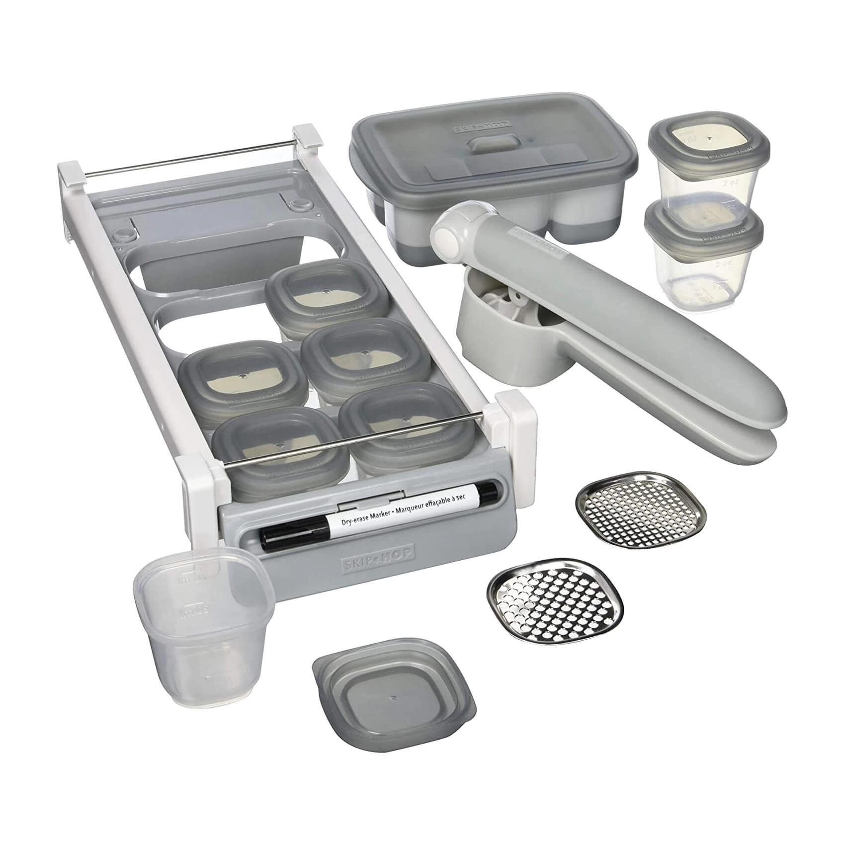 Skip Hop Easy Prep & Store Mealtime Starter Kit is an infant feeding starter kit that includes a food press set, a freezer tray set and a sliding food container tray set. Three time-saving tools for parents. Make fresh baby food with the food press. Store it in the sliding tray and baby food containers or freeze a fresh batch of baby puree for later in the freezer tray set.