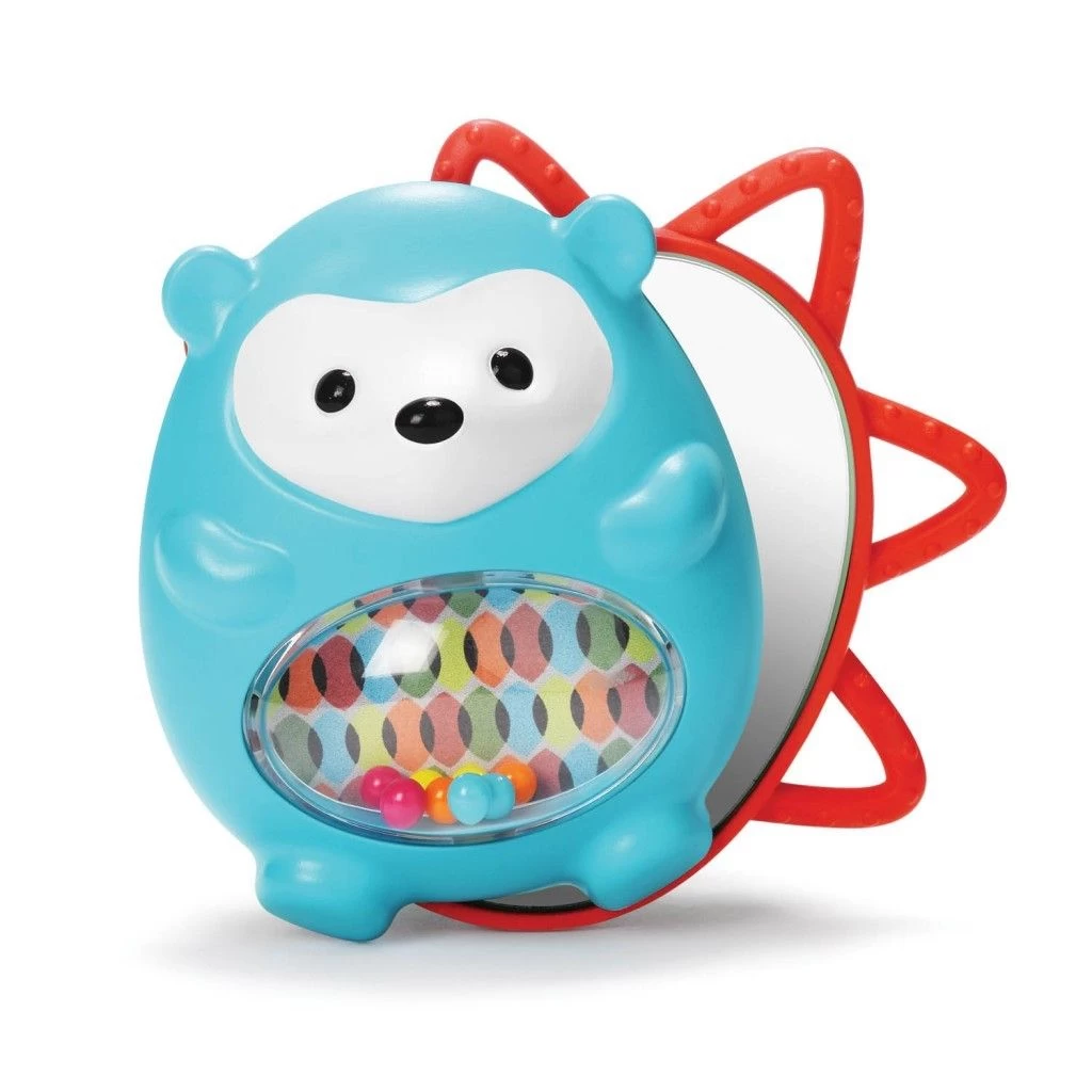 Little hands stay busy as they twist and turn this cute character to discover a hidden mirror. Featuring soft teethers and colorful rattle beads, little ones engage in sensory development and practice motor skills as they play.