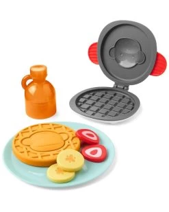 Little chefs will love to whip up waffles for breakfast, lunch (or even dinner!) with our waffle-y fun pretend play set. Featuring a waffle iron, serving plate and fruit slice toppings, we even included a magic waffle! Just fill the syrup bottle with ice-cold water, squeeze onto waffle and a monkey face appears!