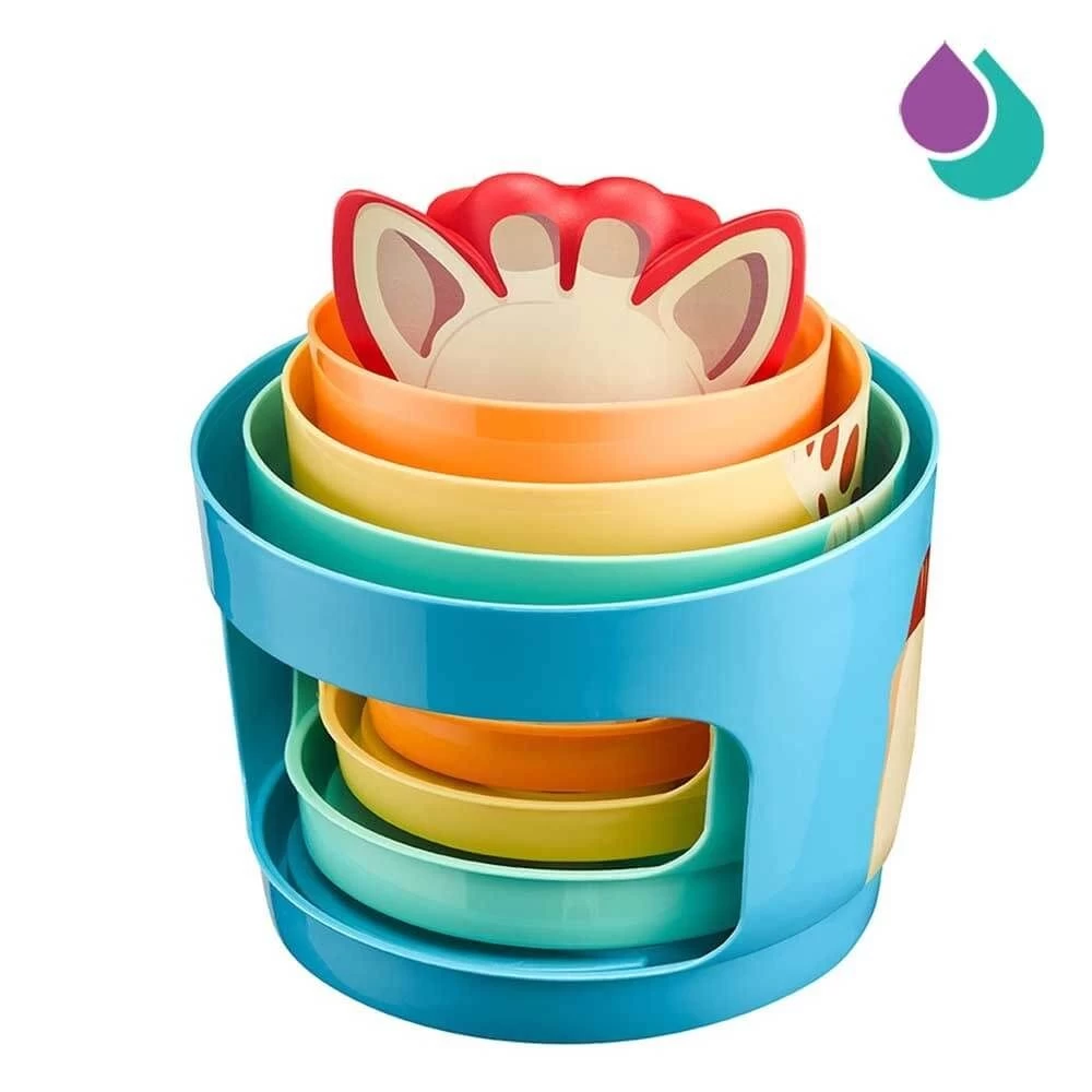 •Construction game: 5 pieces to stack, from the largest to the smallest, allowing Baby to develop his fine motor skills and dexterity.