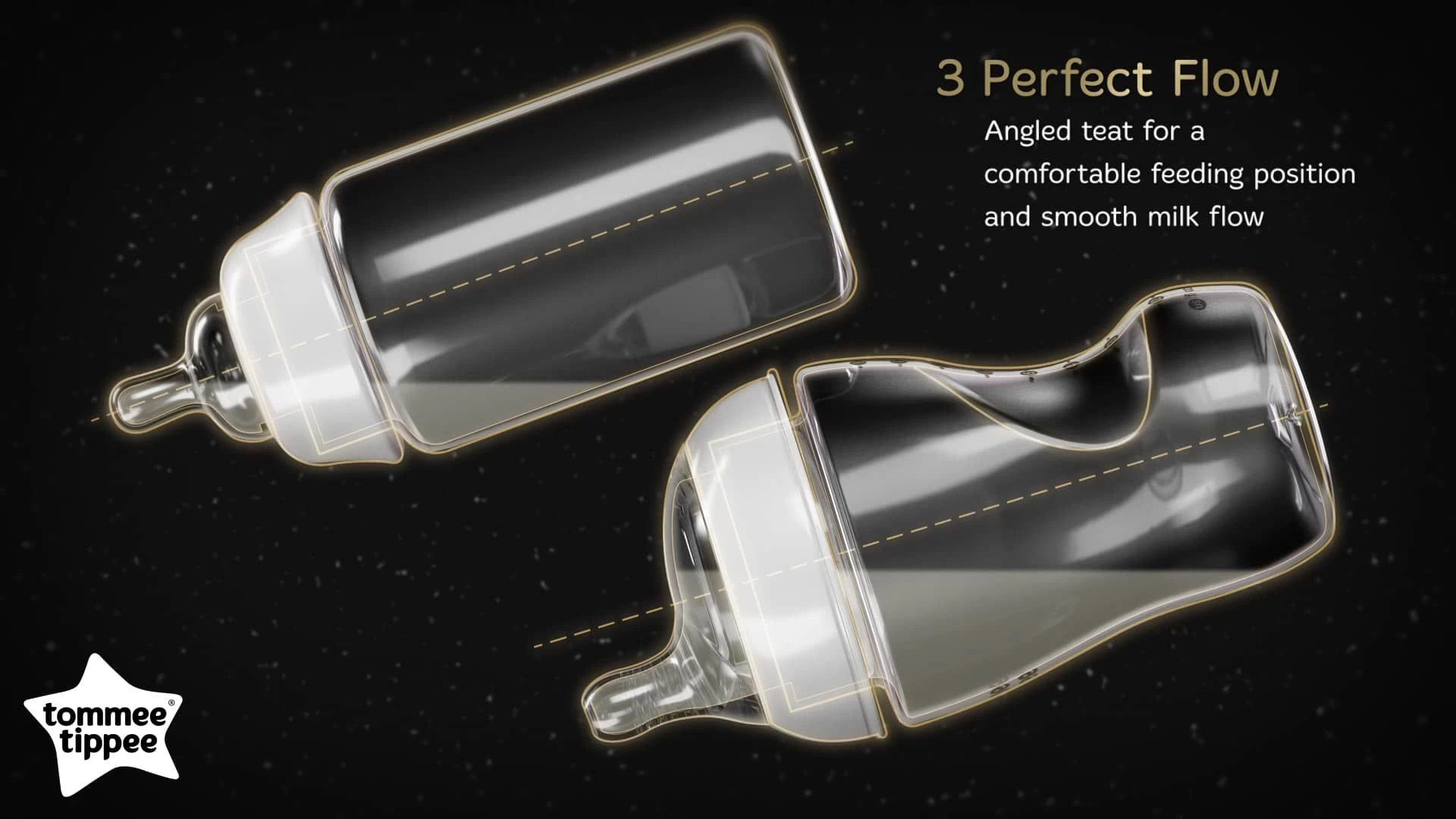 The innovative Tommee Tippee Ultra bottle has been designed for the perfect feeding experience. It features a super sensitive angled teat that allow a natural breast-like latch creating a perfect seal to prevent baby gulping air as they feed and allowing them to be positioned in a more comfortable upright position down to the very last drop.